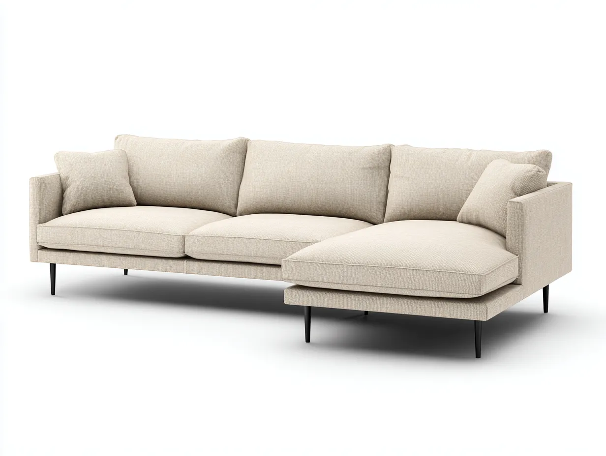 Dieses Ecksofa wurde für moderne Wohnräume entwickelt und kombiniert eine klare Form mit einer komfortablen Sitzfläche. Die großzügige Polsterfläche ermöglicht entspanntes Sitzen im Alltag und schafft eine angenehme Atmosphäre im Wohnzimmer. Durch die ausgewogene Proportion eignet sich das Möbelstück sowohl für offene Wohnbereiche als auch für kompakte Wohnräume und fügt sich harmonisch in verschiedene Einrichtungsstile ein.