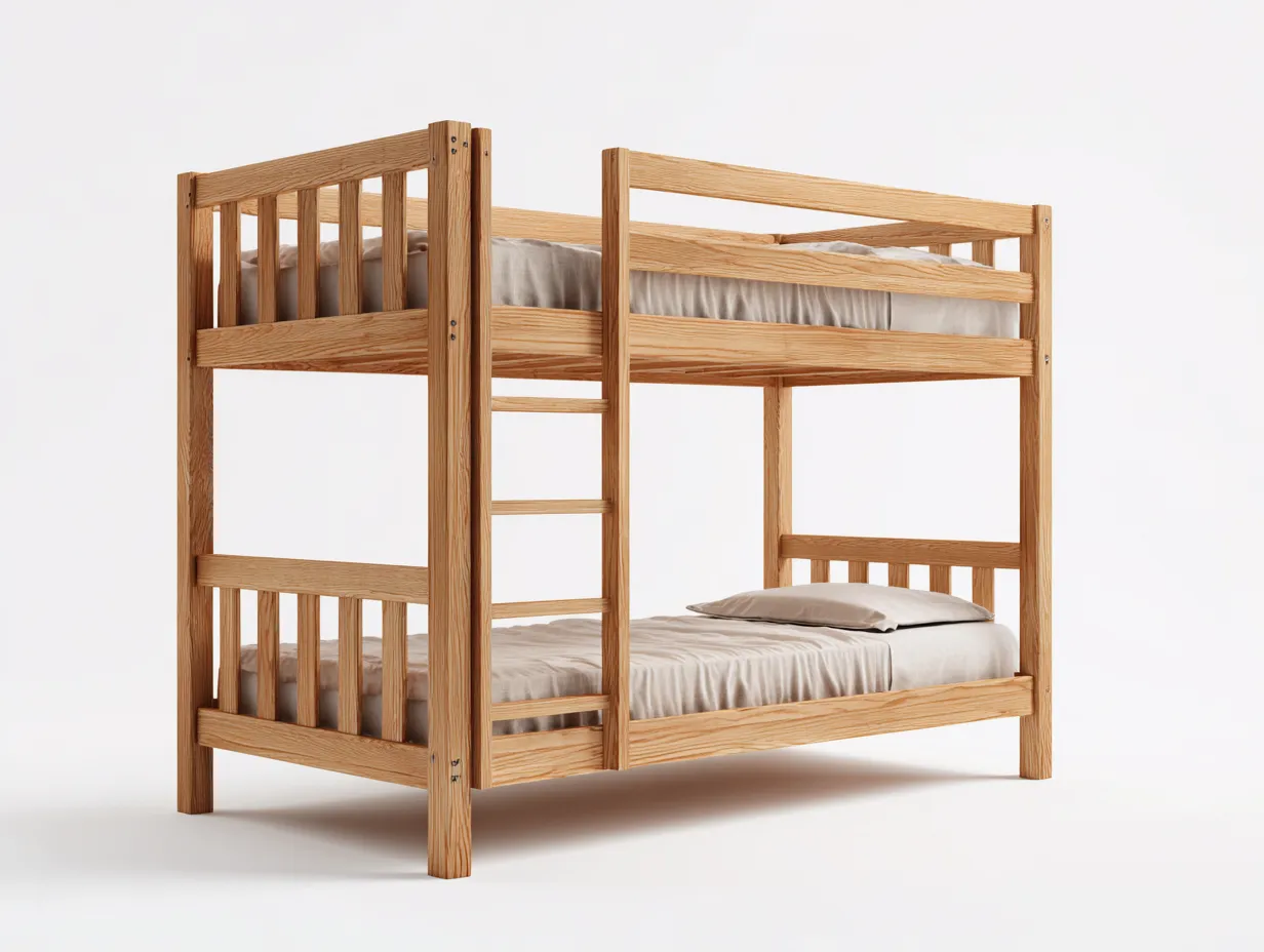 Dieses Etagenbetten-Modell aus Massivholz bietet eine stabile und platzsparende Schlaflösung für Wohnräume mit begrenzter Stellfläche. Die klare Konstruktion kombiniert praktische Nutzung mit natürlicher Holzoptik und fügt sich harmonisch in verschiedene Einrichtungsstile ein. Die solide Bauweise unterstützt eine zuverlässige Nutzung im Alltag und eignet sich für Kinderzimmer, Jugendzimmer oder Gästezimmer.