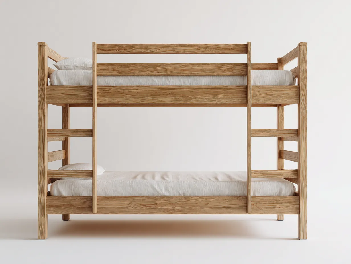 Dieses Etagenbetten-Modell aus Massivholz bietet eine stabile und platzsparende Schlaflösung für verschiedene Wohnbereiche. Die klare Linienführung und die natürliche Holzoptik sorgen für eine ruhige und harmonische Atmosphäre im Raum. Das funktionale Design eignet sich besonders für Kinderzimmer, Jugendzimmer oder Gästezimmer und unterstützt eine effiziente Nutzung der vorhandenen Wohnfläche.