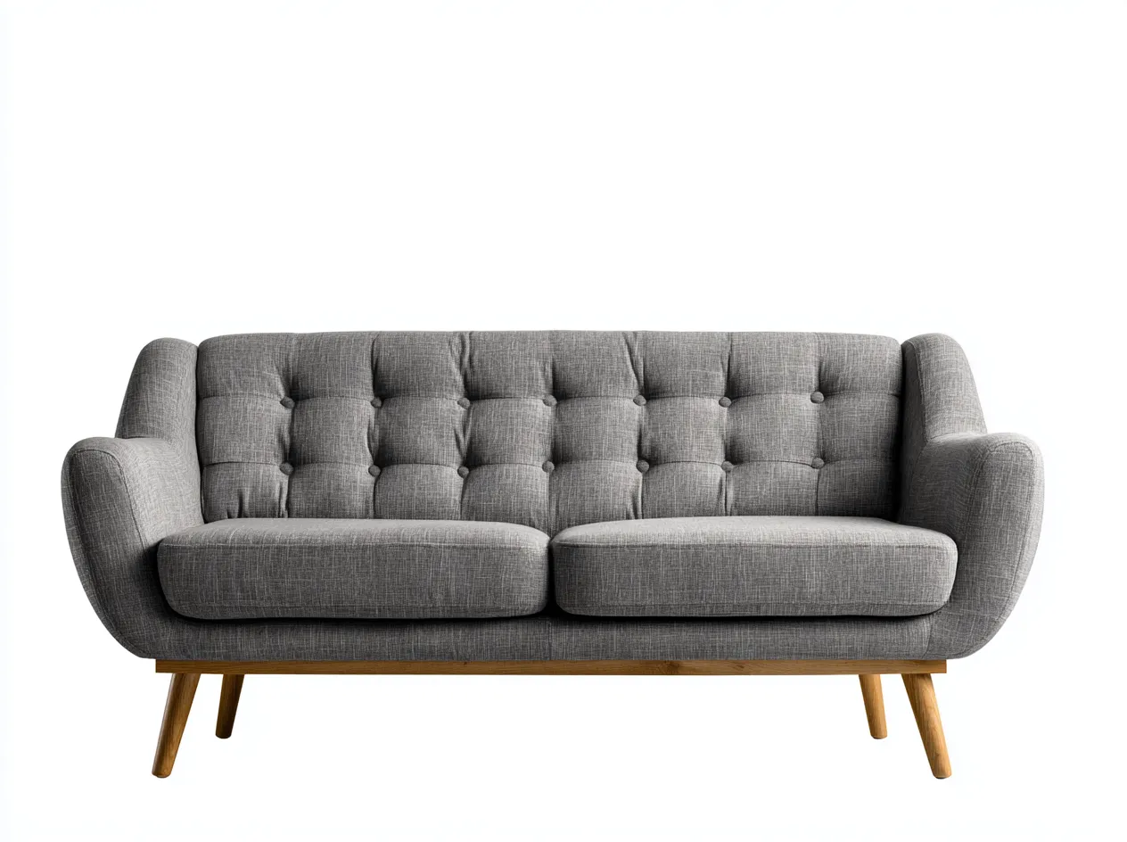 Das Sofa besteht aus Stoff und Holz. Der graue Stoffbezug besitzt eine dezente Textilstruktur, die dem Möbelstück eine elegante und zeitlose Ausstrahlung verleiht. Die stabile Holzkonstruktion bildet eine solide Grundlage und unterstützt eine langlebige Nutzung. Gleichmäßige Nähte und sorgfältig verarbeitete Polsterdetails unterstreichen die hochwertige Verarbeitung.